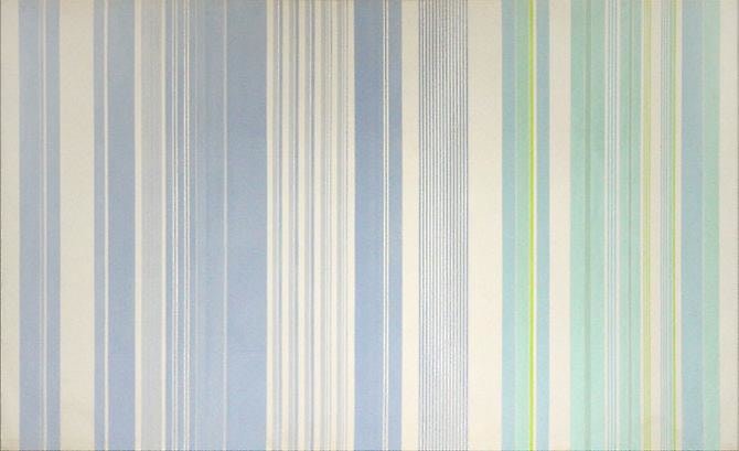 The English artist Bridget Riley, who turned to vertical stripes in the 1970s and early 1980s, prepared her color combinations painstakingly in advance of painting each work. Davis never did this. Like his favorite jazz musicians, he improvised each work, starting with at most a basic concept and adding one stripe at a time, never certain what problems and what possibilities each new element would pose. And it was this willingness to experiment, even at the risk of failure, that infused the geometry of his best-known image with unflagging vigor and freshness.