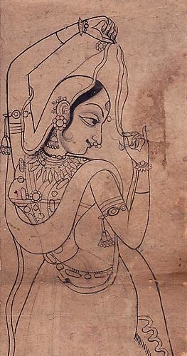 • A lively 18th century Ivory depicting a female Tabla (drum) player.